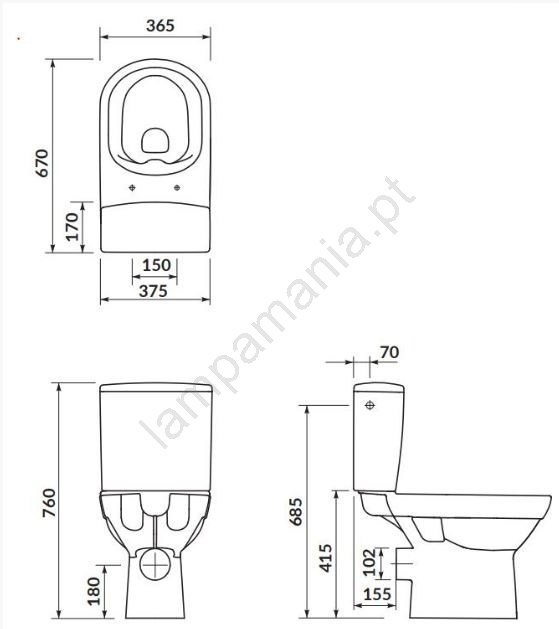 • A sanita utiliza um sistema de descarga de 3/5 litros.