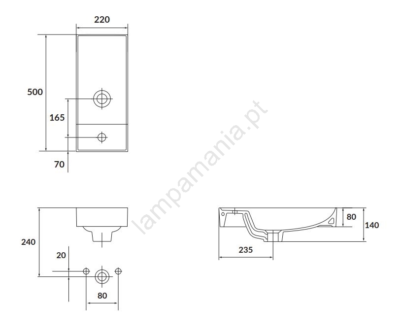 • A torneira e o ralo do lavatório não estão incluídos no pacote.