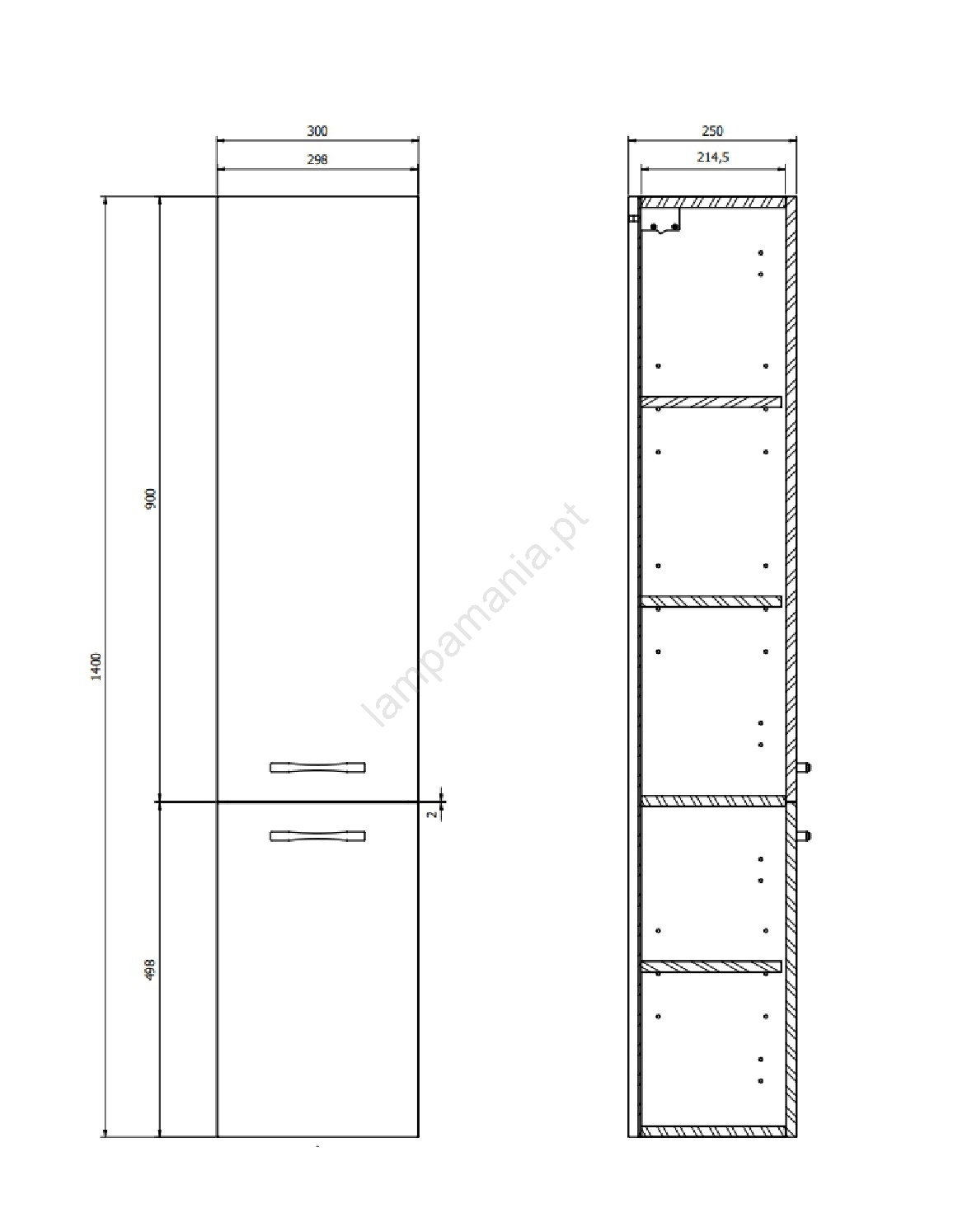 • A frente, o corpo e as prateleiras interiores são fabricados em aglomerado de 16 mm com acabamento lacado branco.