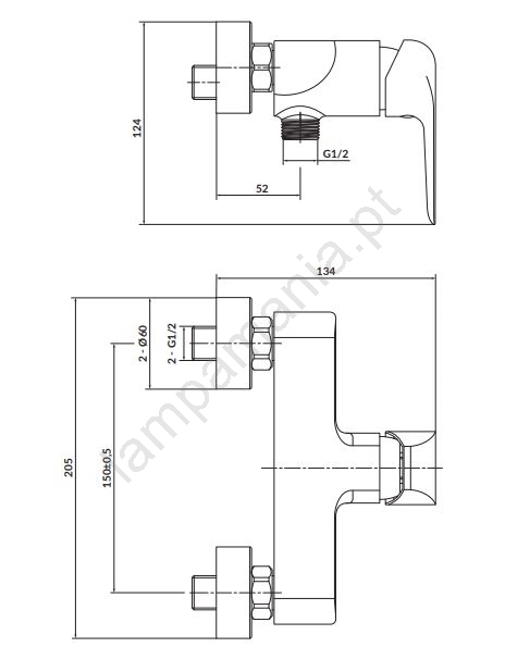 • Elemento de controlo: cartucho cerâmico de 35 mm.