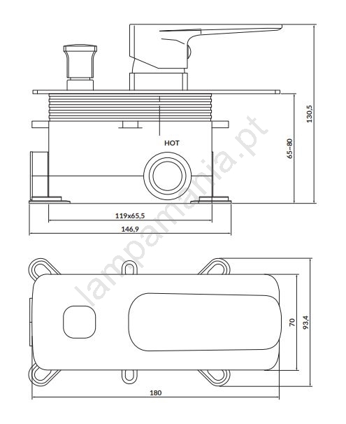 • Elemento de controlo: cartucho cerâmico de 35 mm.