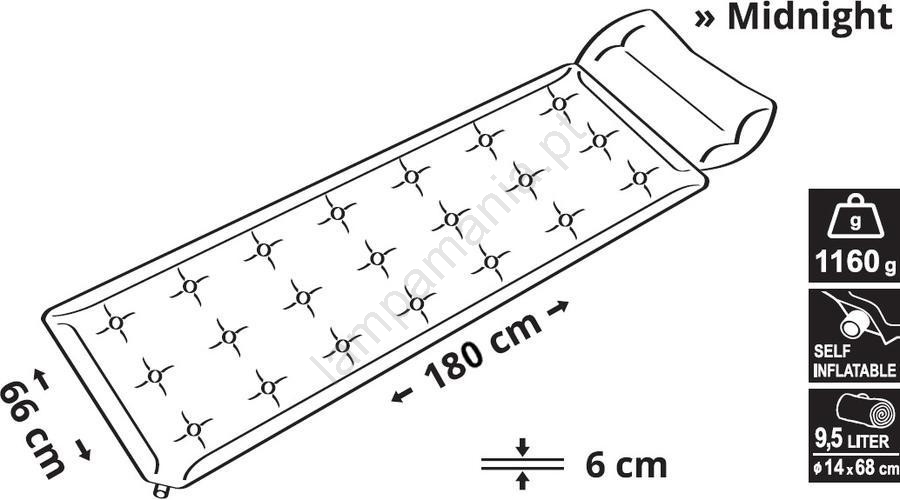 • O colchão autoinflável possui um núcleo de espuma de alta porosidade laminado em tecido impermeável.