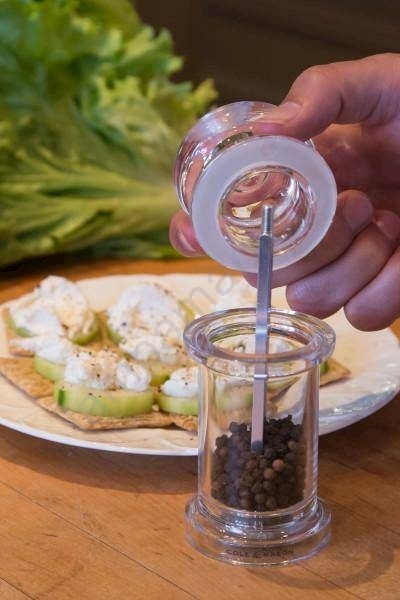 • Corpo transparente prático, permitindo visualizar facilmente o nível de recheio dos moinhos.