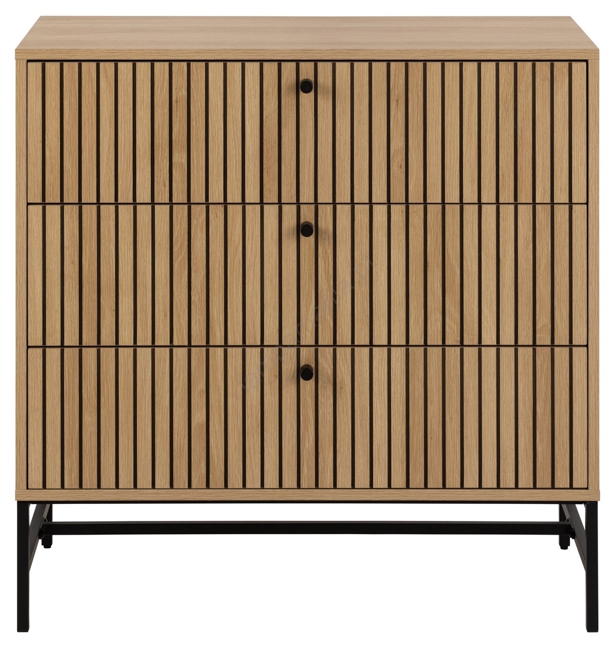 • Esta cômoda com aspecto de carvalho e frente ripada confere ao seu corredor estilo e praticidade.