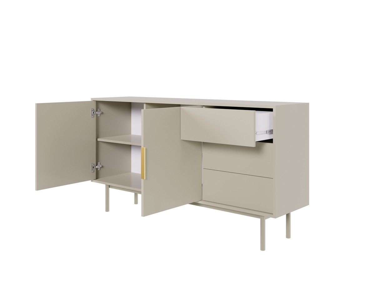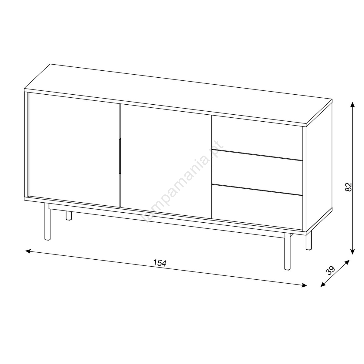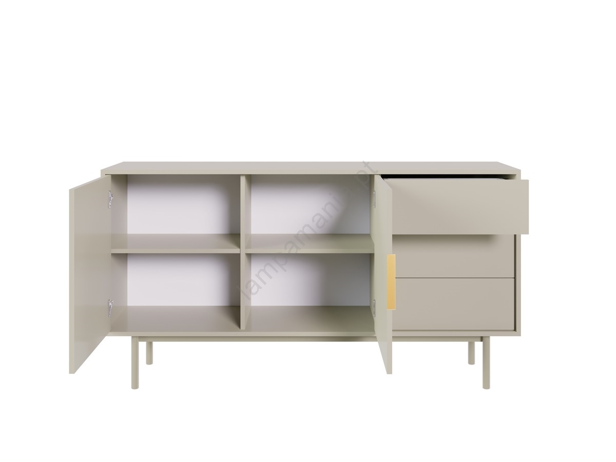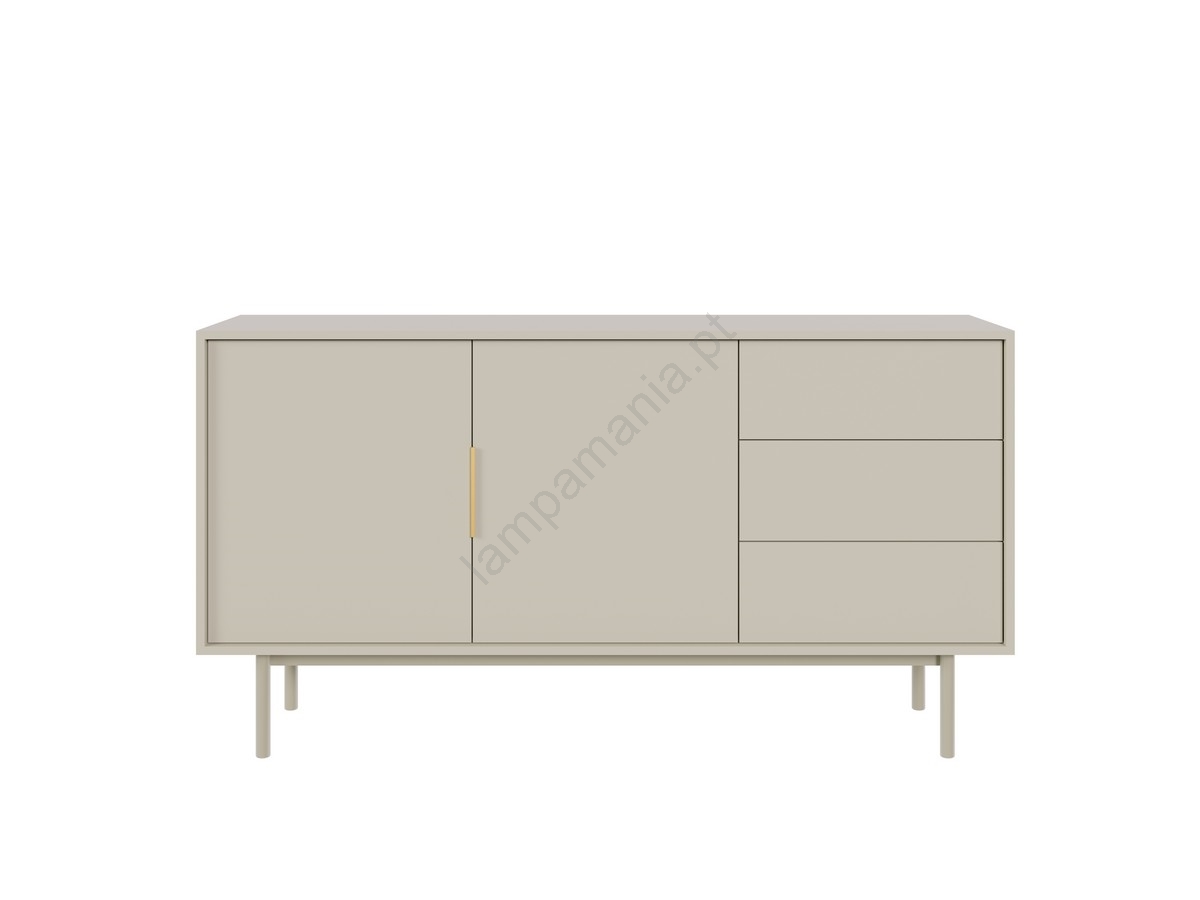 • Dispõe de duas portas à esquerda e três gavetas à direita, garantindo uma arrumação organizada.