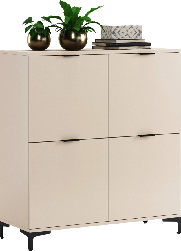 • O móvel é fabricado em estilo loft e destaca-se pelas pernas e puxadores metálicos, que lhe conferem um toque industrial adicional.