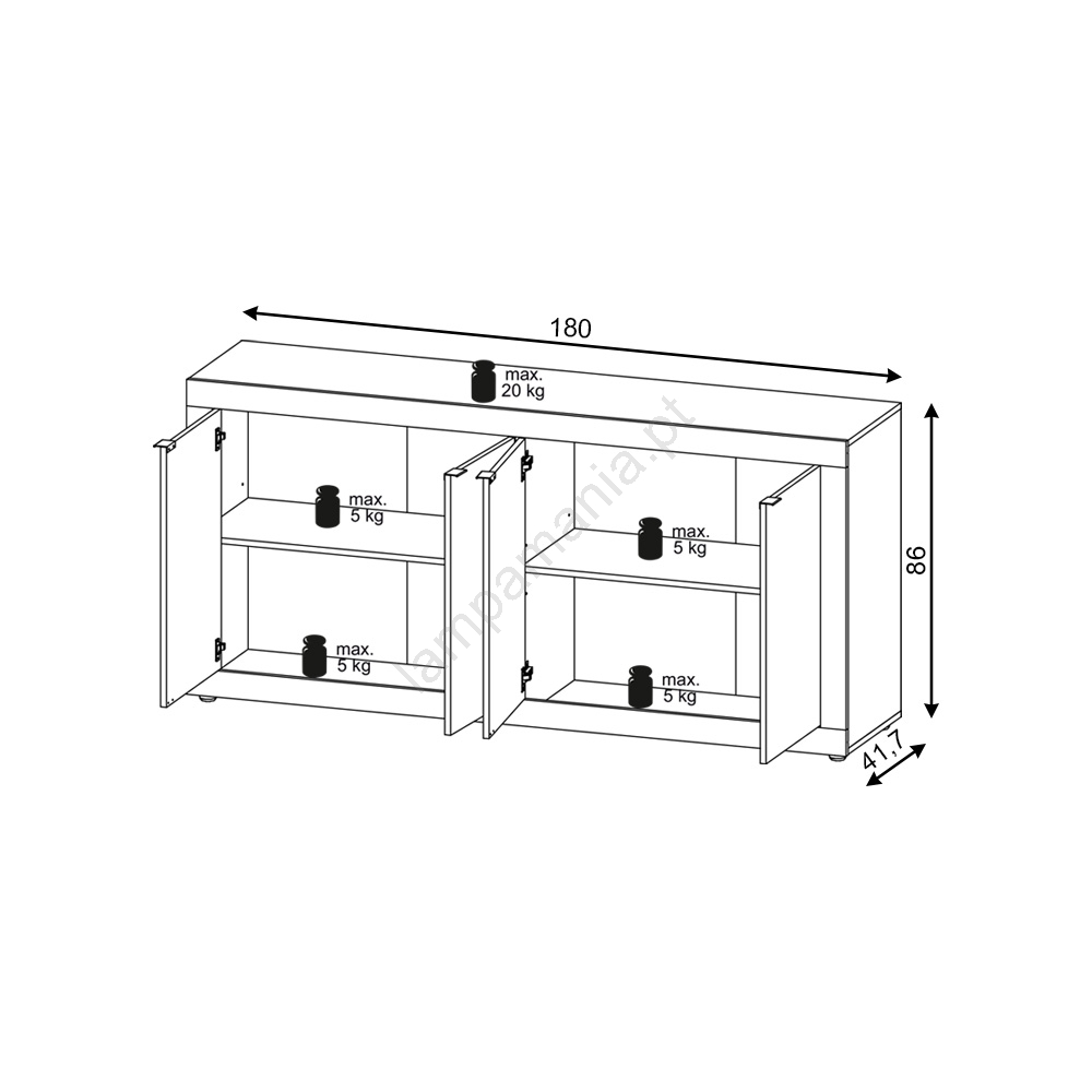 • A superfície superior é suficientemente espaçosa para acomodar decorações, equipamentos eletrónicos ou outros essenciais.