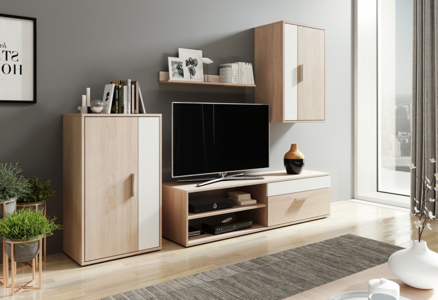Conjunto de parede para sala BRICK carvalho sonoma/branco