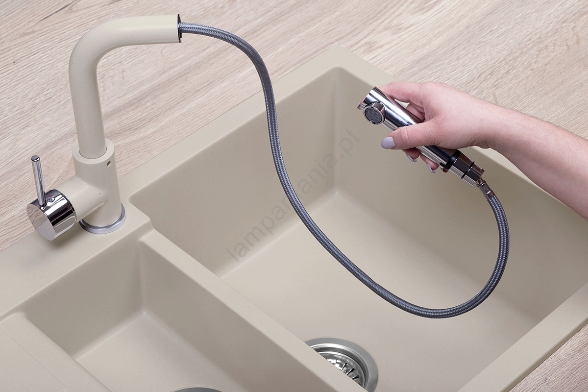 • Torneira de cozinha com mangueira de chuveirinho extensível.