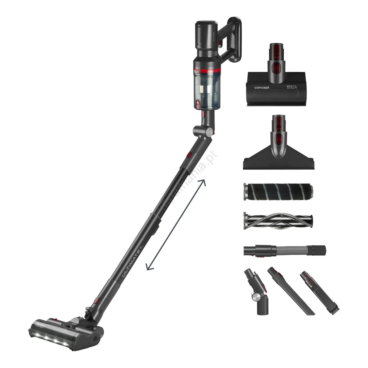 • O aspirador vertical 3 em 1 Ultimate UV Power 29,6 V Concept VP6150 é um modelo extremamente versátil que se adapta às necessidades de cada utilizador.