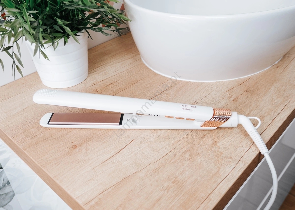 Concept VZ2110 - Prancha alisadora de cabelo GLAM STYLE 48W/230V branca/ouro rosa