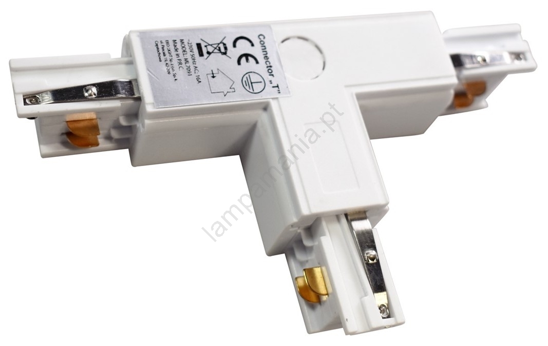 Conector para iluminações em sistema de carril trifásico TRACK branco tipo T