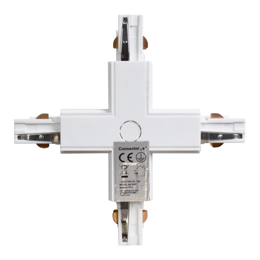 Conector para iluminações em sistema de carril trifásico TRACK branco tipo +