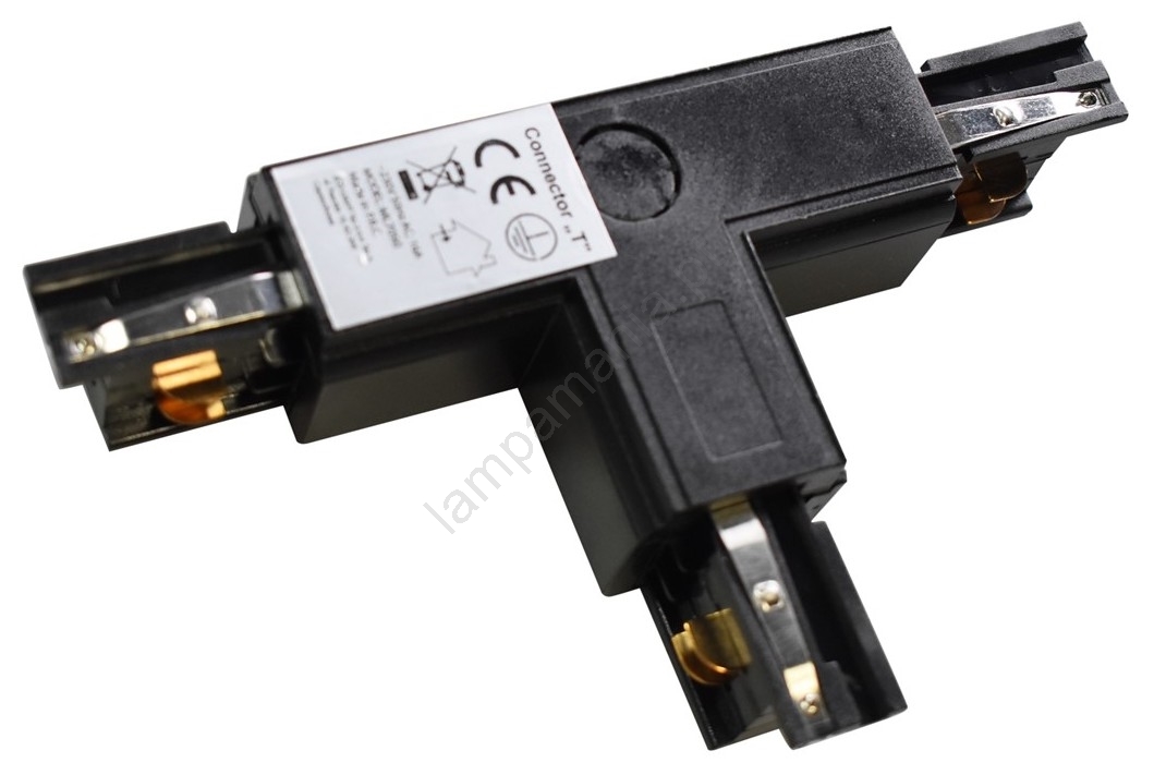Conector para iluminações em sistema de carril trifásico TRACK preto tipo T