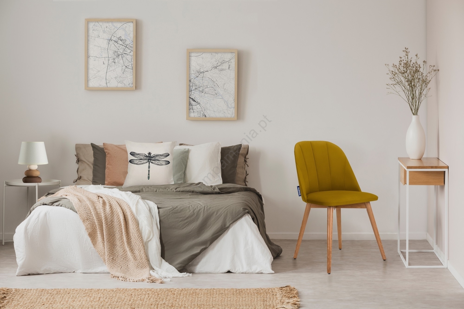 • Pés em madeira maciça de faia.