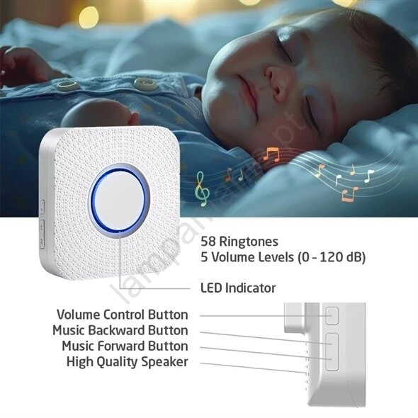 • Uma grande vantagem da campainha é a memória da melodia e do volume configurados, mesmo após a desconexão da rede elétrica.