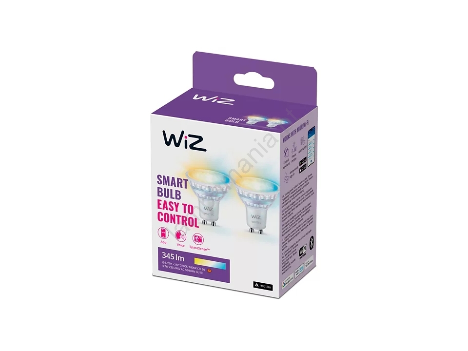 De acordo com o casquilho, GU10, GU10, Iluminação inteligente, Iluminações, Lâmpadas, Lâmpadas, Lâmpadas com regulação, Lâmpadas com sensor, Lâmpadas inteligentes, Lâmpadas LED, Lâmpadas LED GU10, Marcas, WiZ, WiZ