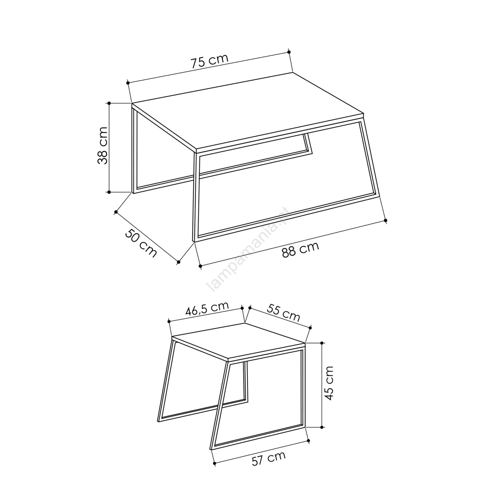 • Dimensões da mesa menor: 45 x 57 x 55 cm.