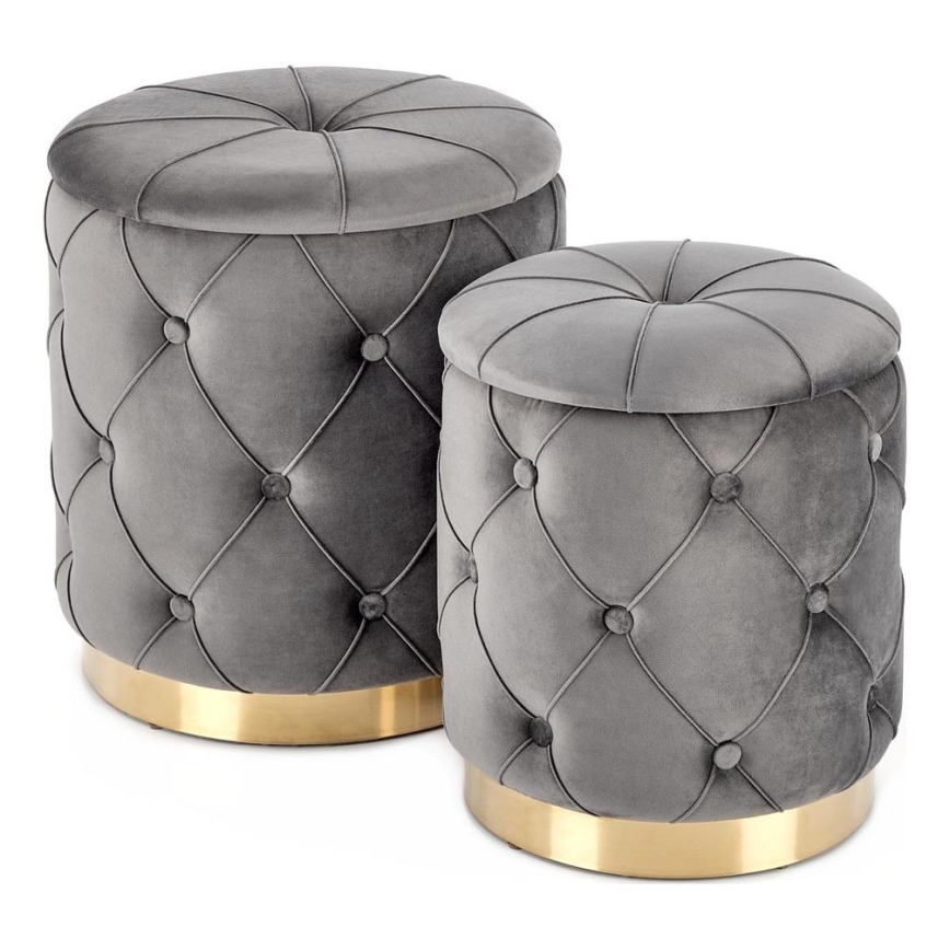 CONJUNTO 2x Pufes POLLY diâmetro 40/44 cm cinzento/dourado
