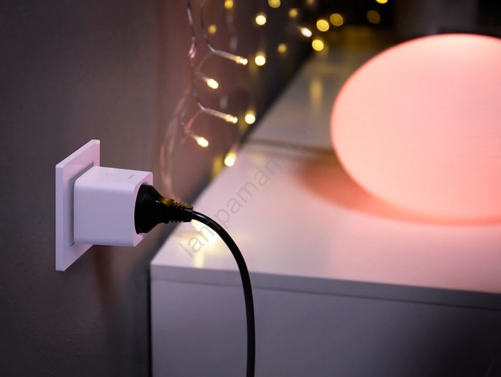 • Este pequeno e discreto plugue permite transformar qualquer luz (mesmo aquelas onde a lâmpada Hue não pode ser inserida) em uma luz inteligente que você pode controlar via aplicativo Hue ou por voz.
