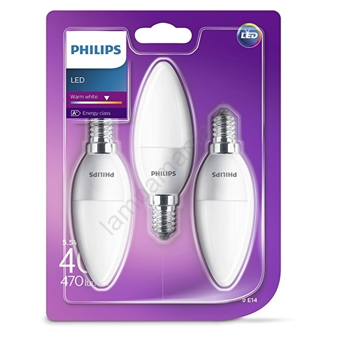CONJUNTO 3x Lâmpada LED Philips B35 E14/5,5W/230V O design de alta qualidade garante uma iluminação perfeita do seu interior. A categoria E14 é dedicada às lâmpadas com o mesmo casquilho. Na nossa loja virtual, pode escolher entre lâmpadas com filamento tradicional ou lâmpadas LED modernas, que são mais eficientes em termos energéticos e têm uma vida útil mais longa.