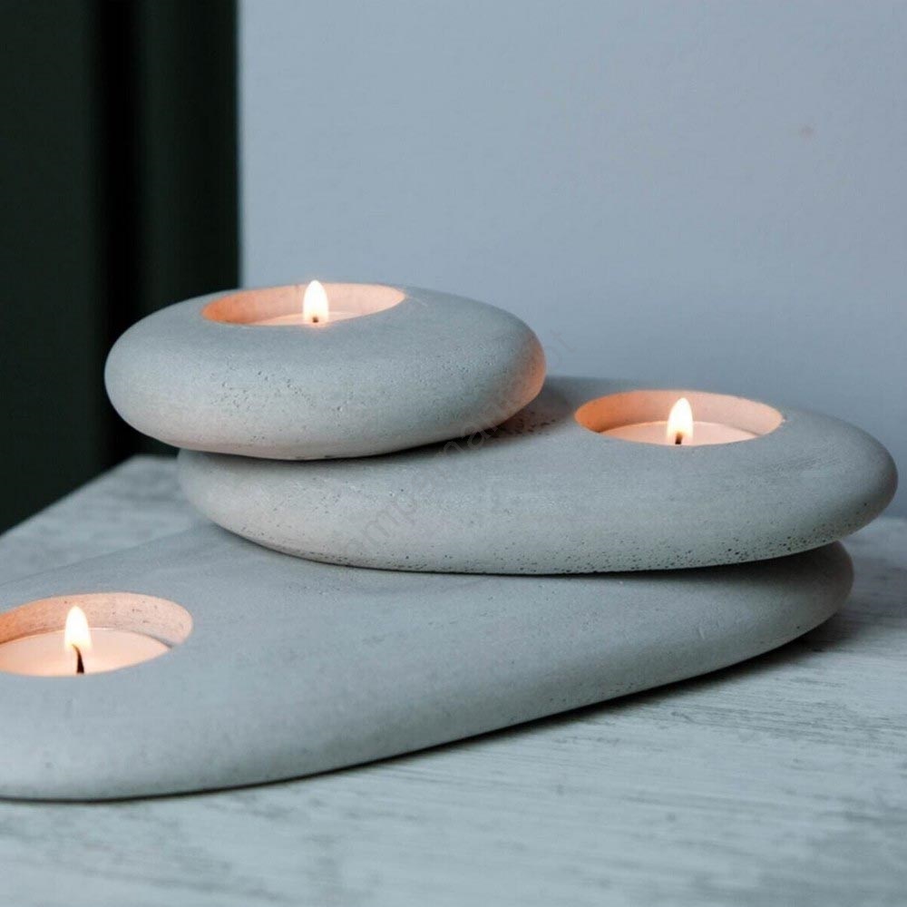 • Suportes de betão para velas de chá em três tamanhos diferentes.