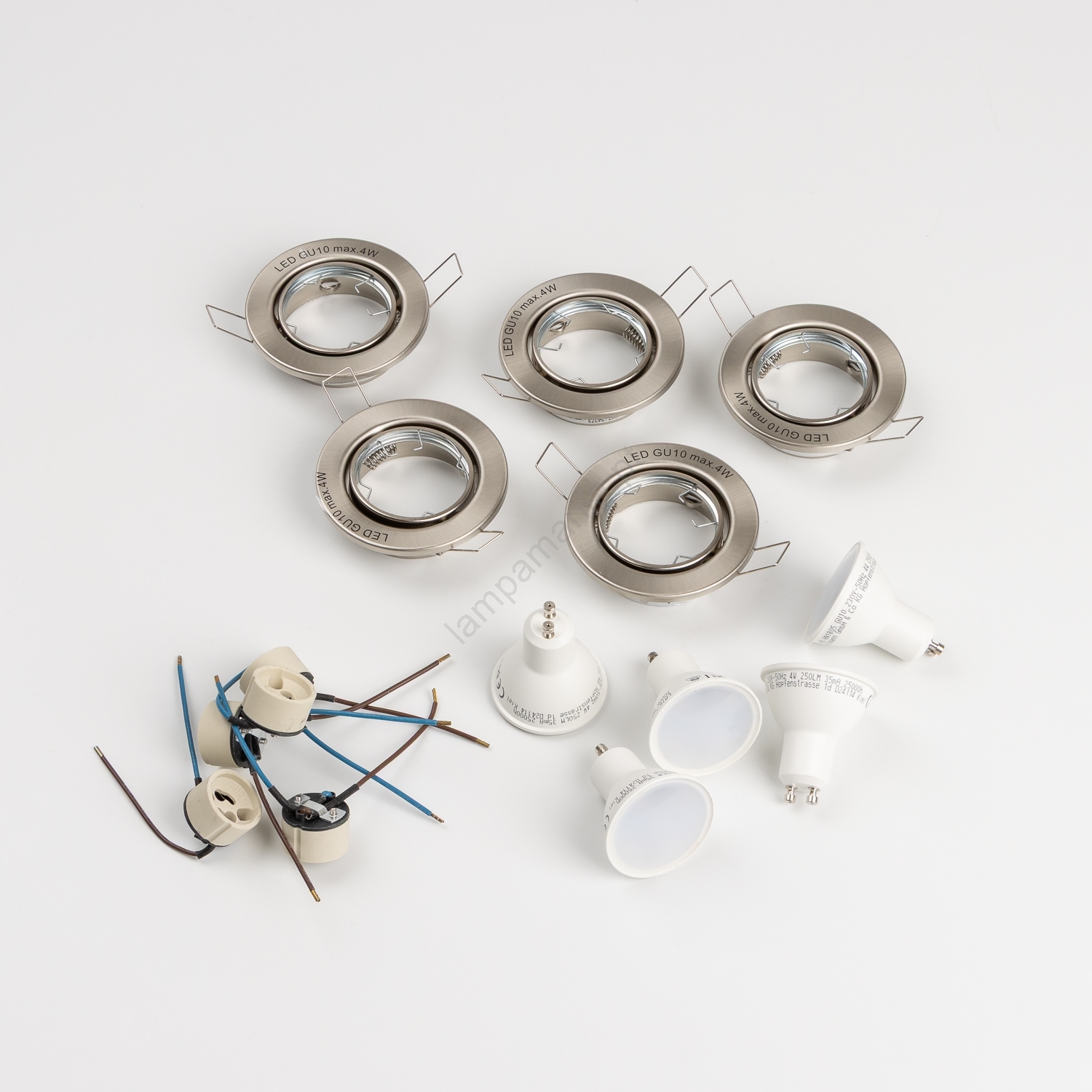 Conjunto 5x luminárias embutidas para casa de banho 1xGU10/4W/230V IP23, acabamento cromo mate