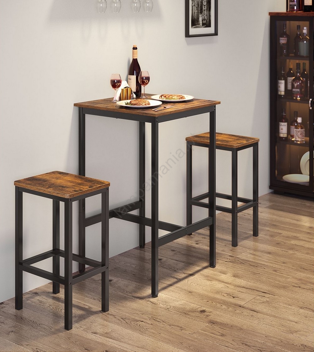 • Conjunto BARTIS: mesa de bar e 2 bancos altos, castanho/preto