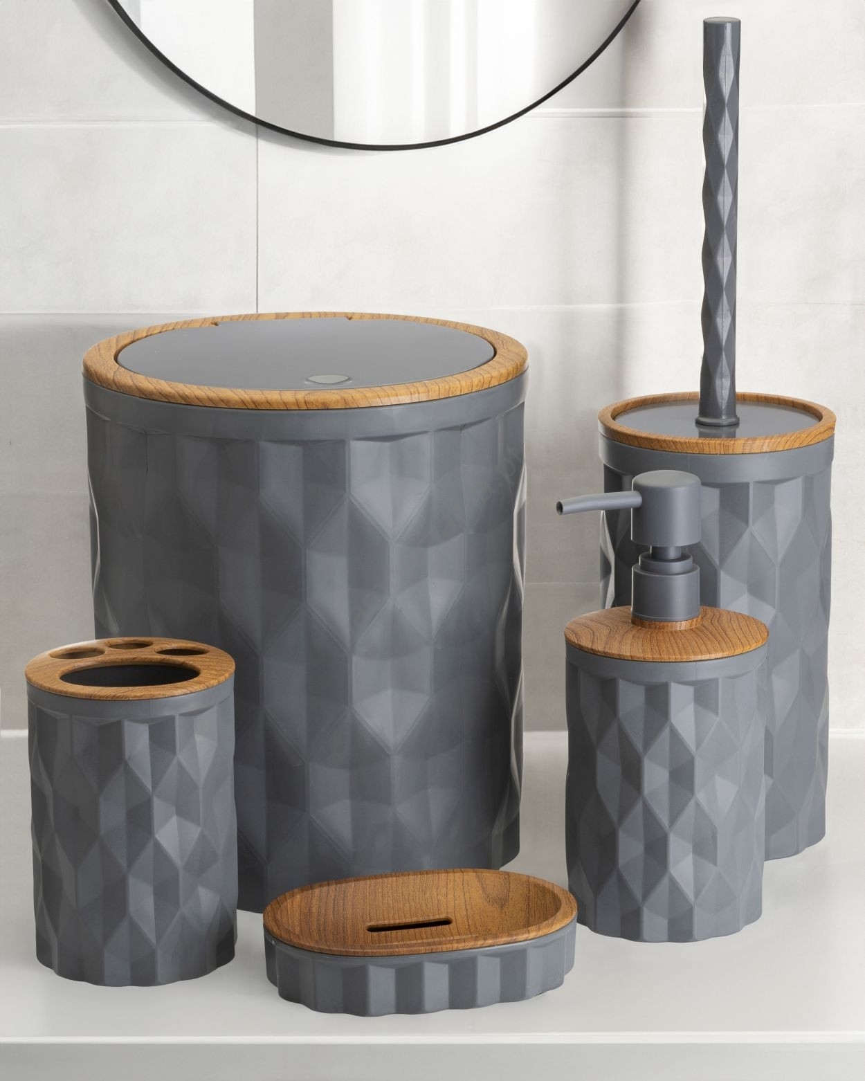 Conjunto para casa de banho REINA 5 unid. antracite/castanho