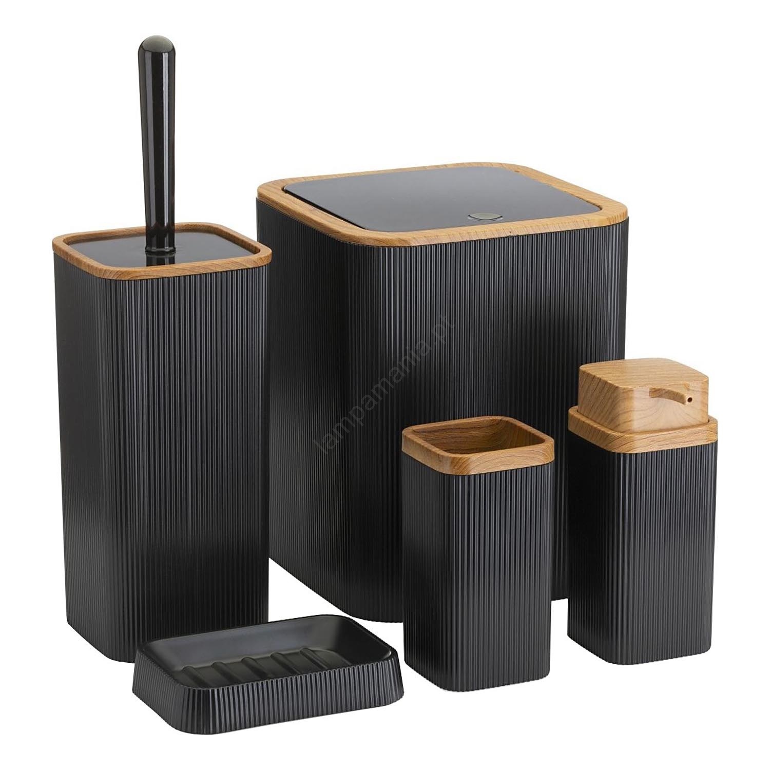 • Conjunto para casa de banho ZOYA 5 unid. preto/castanho