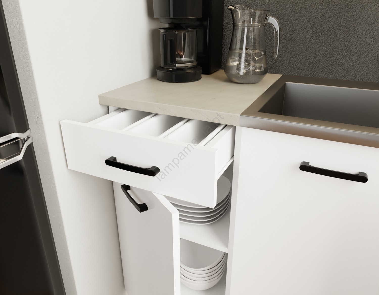 • Adisposição dos armários é modular, pode personalizar a cozinha de acordo com as suas preferências.