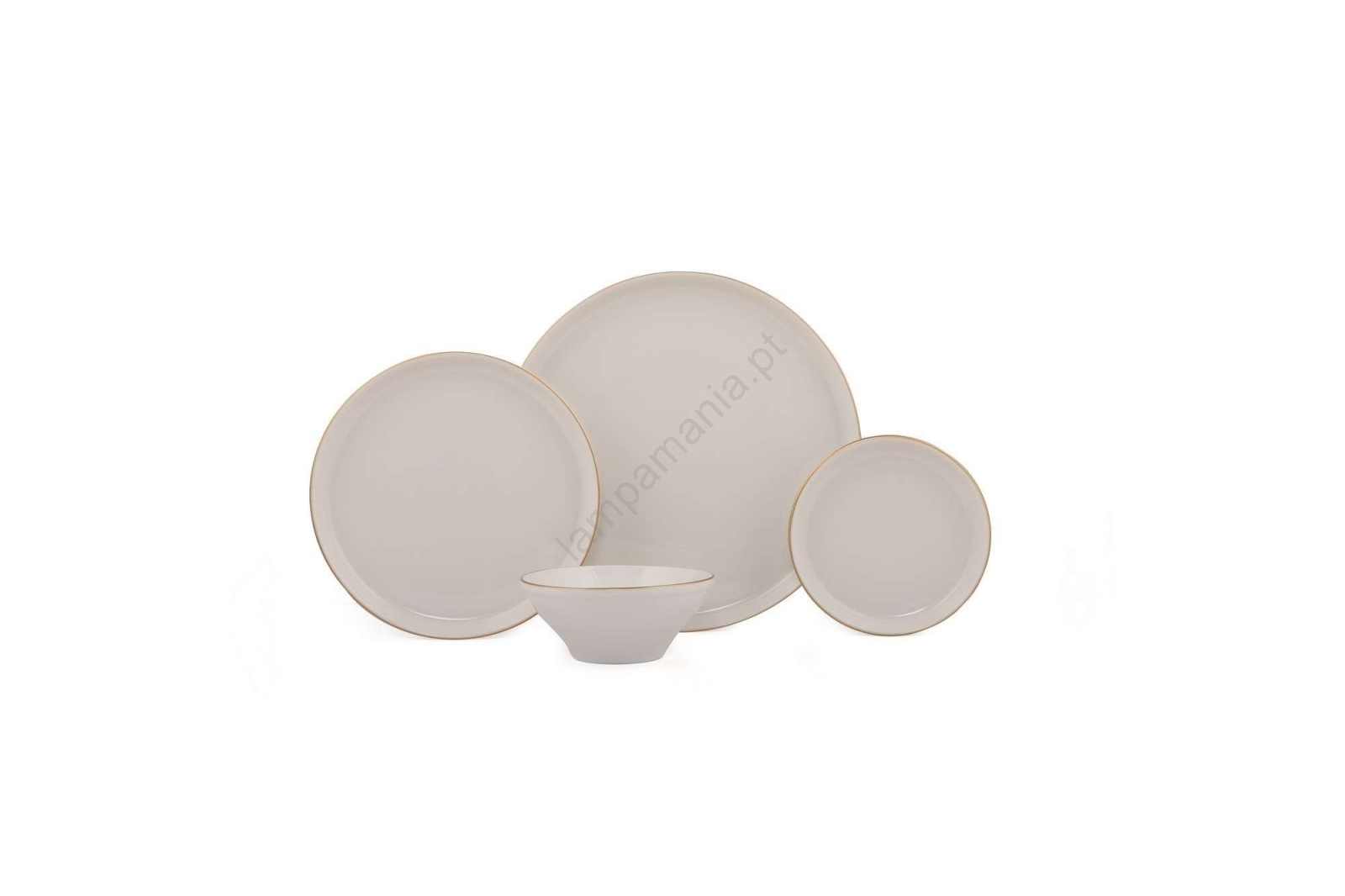 Conjunto de jantar 16 peças em porcelana, bege com detalhes dourados