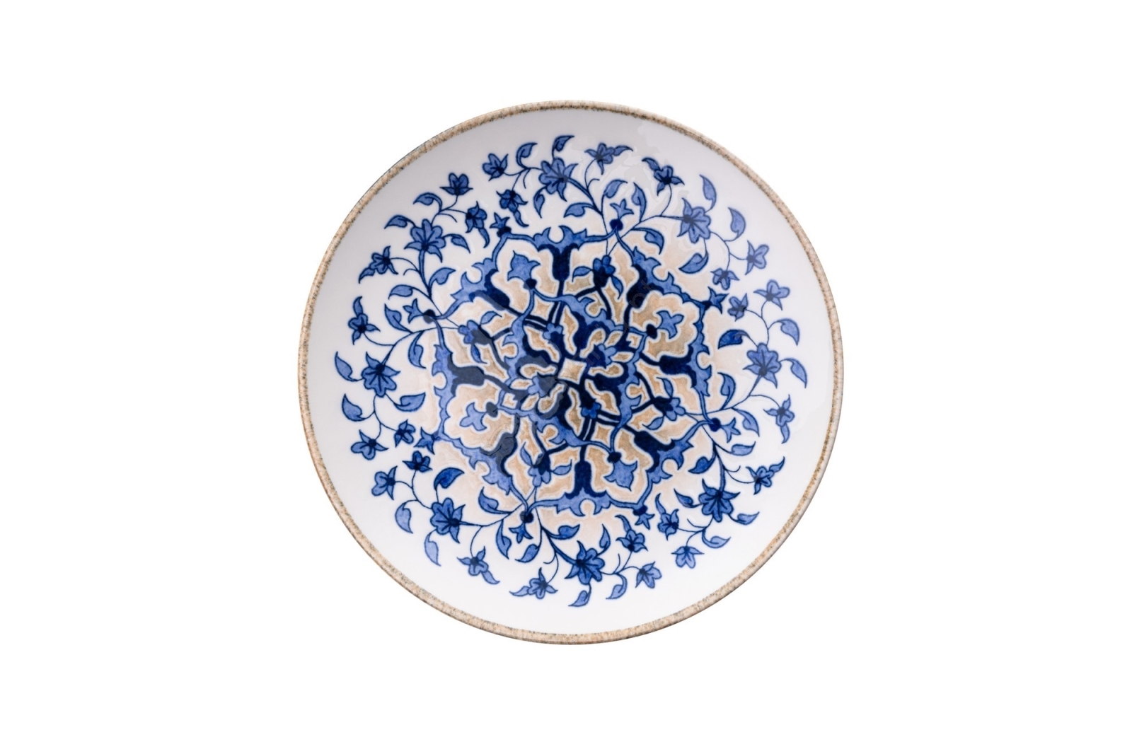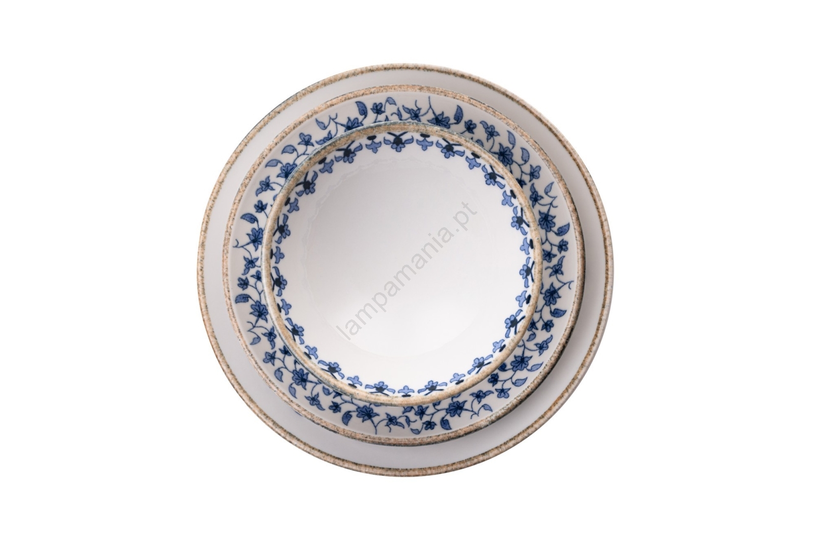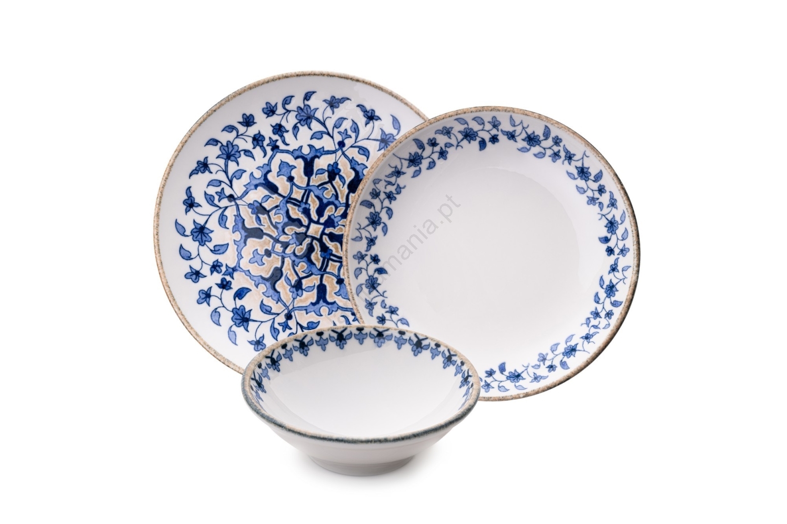 Conjunto de jantar 18 peças em porcelana, branco e azul