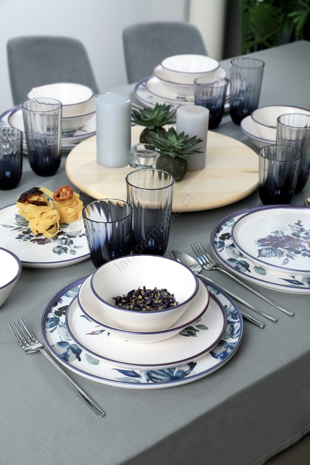 Conjunto de jantar 24 peças, branco/azul, em cerâmica