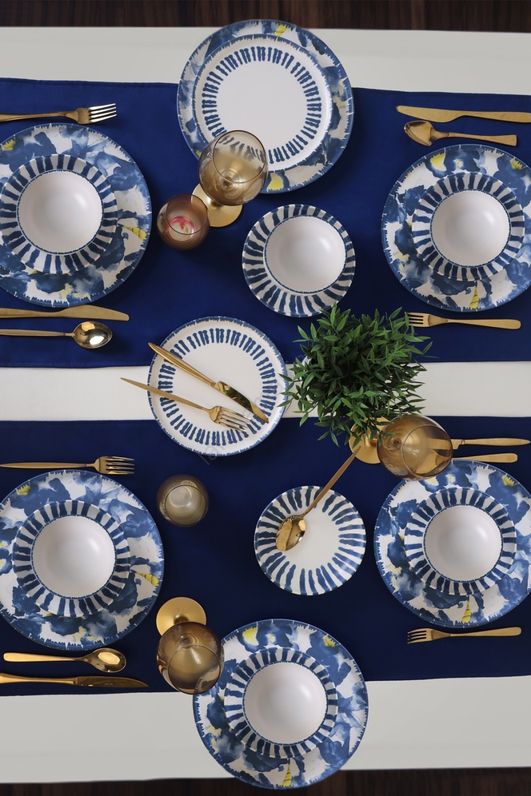 Conjunto de jantar 24 peças branco/azul/grés