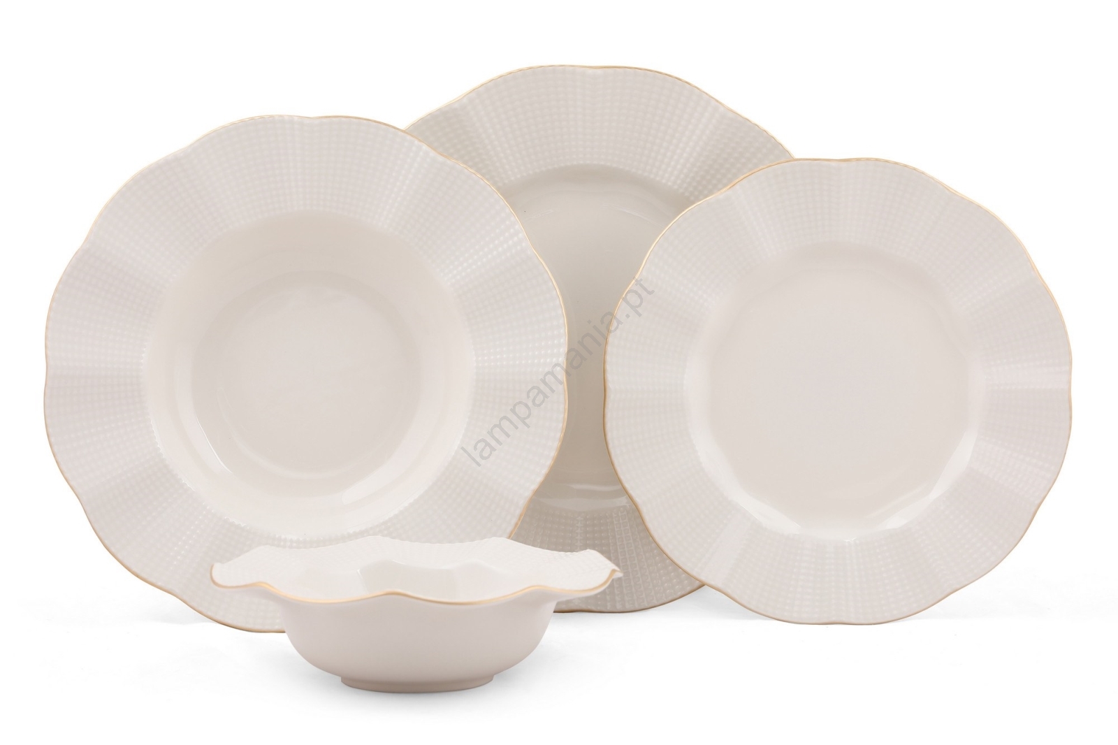 Conjunto de jantar 24 peças branco/dourado/porcelana