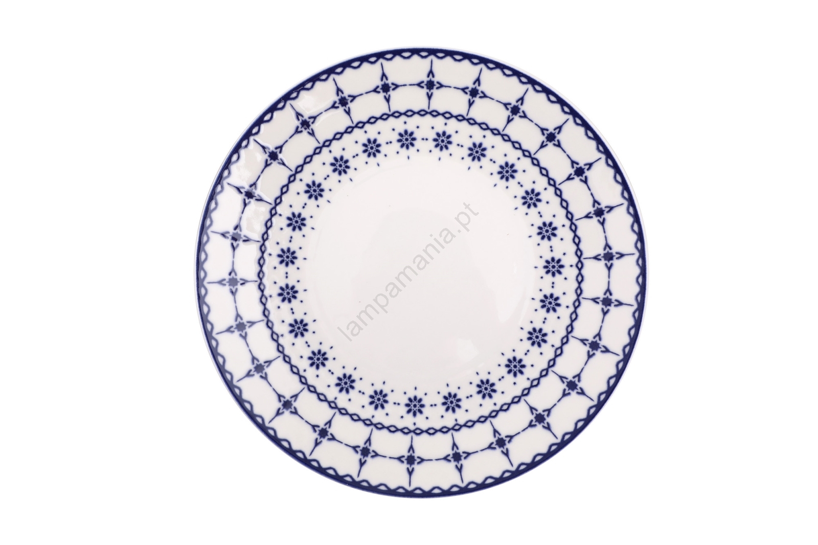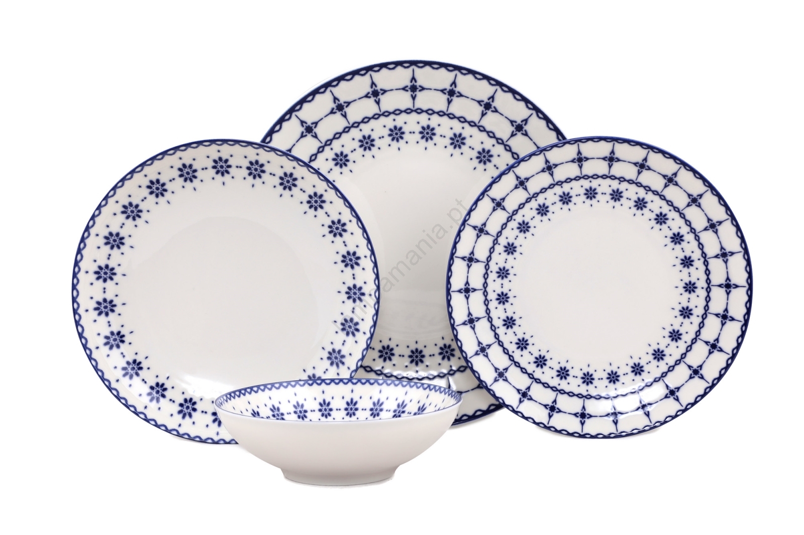 Conjunto de jantar 24 peças em porcelana — branco e azul