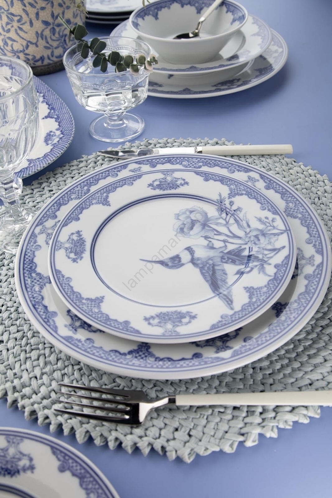 Conjunto de jantar 26 peças branco/azul/porcelana