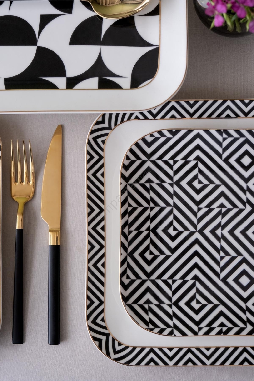 Conjunto de jantar 26 peças branco/preto/porcelana