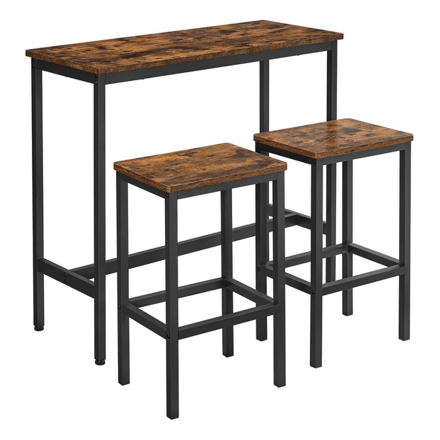 Conjunto de mesa de bar com 2 banquetas BARTIS, castanho/preto