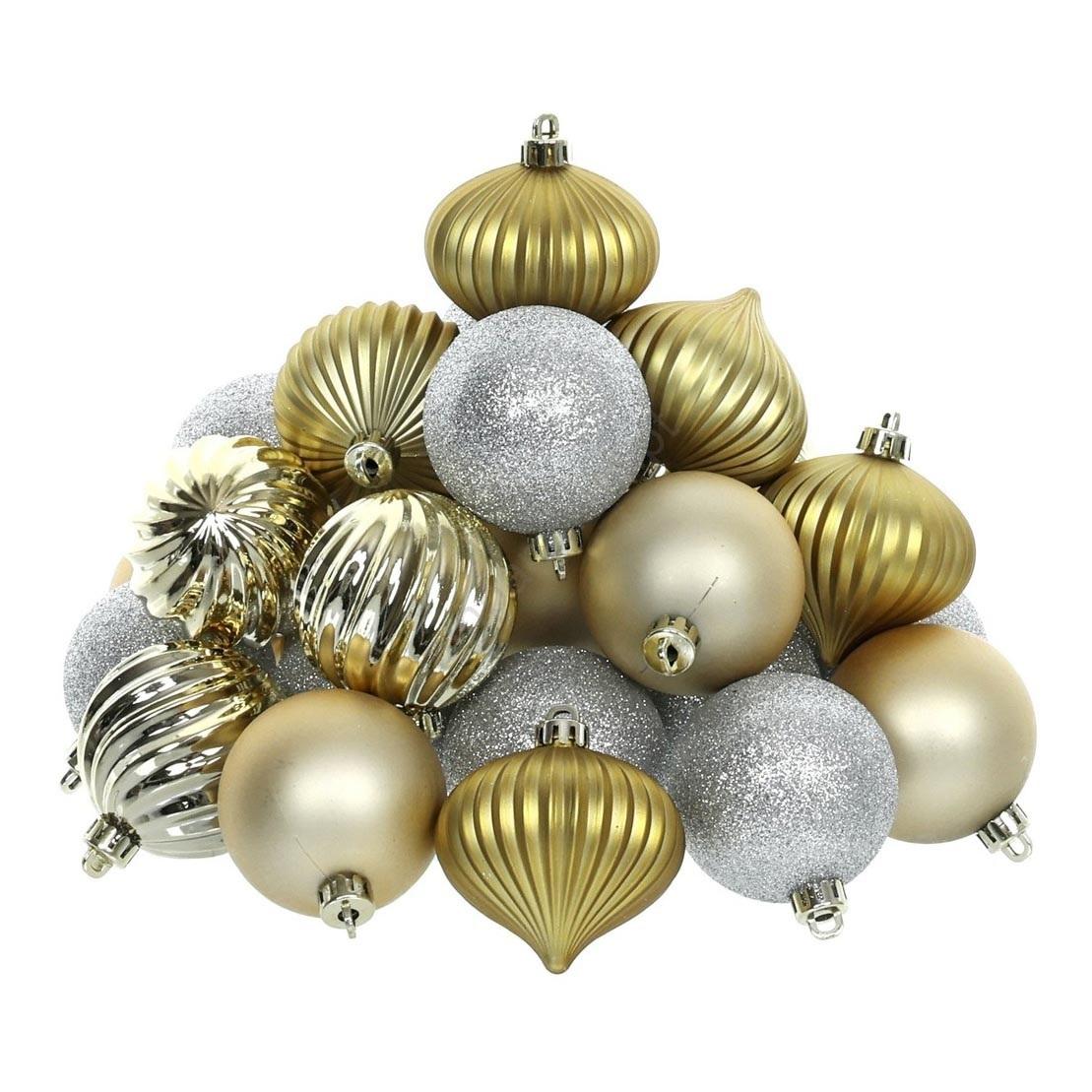 • Conjunto de 30 peças de ornamentos de Natal nas tradicionais cores prateado e dourado.