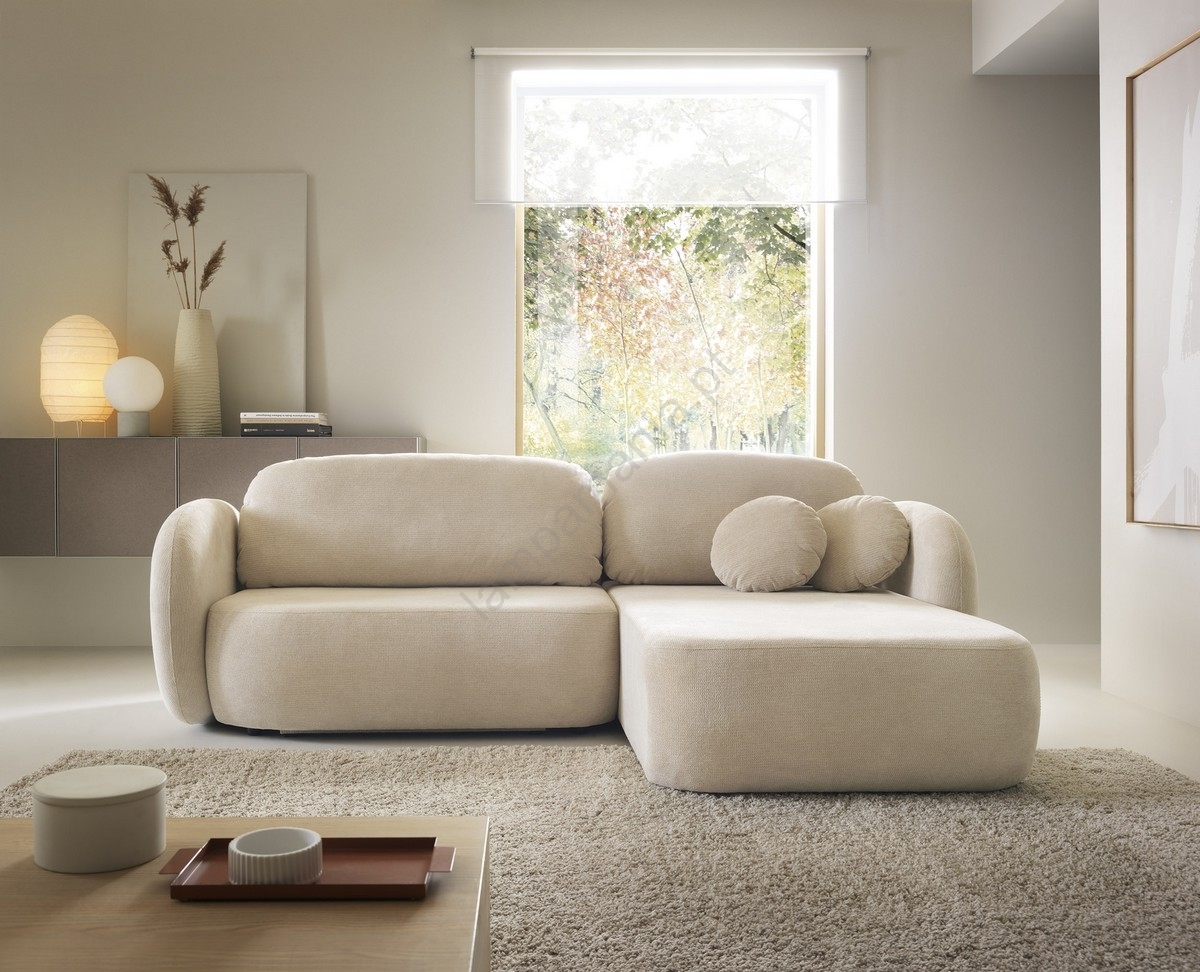 • Sofá-cama de canto em L OLBIA com espaço de arrumação, versão direita, bege