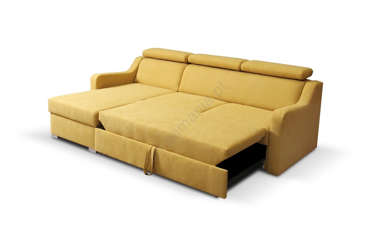 Sofá de canto versátil e conversível com baú PORTO amarelo