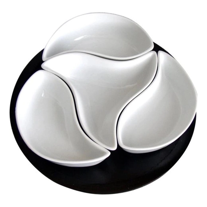 Conjunto de tigelas com bandeja TORO 4 peças cerâmica/madeira