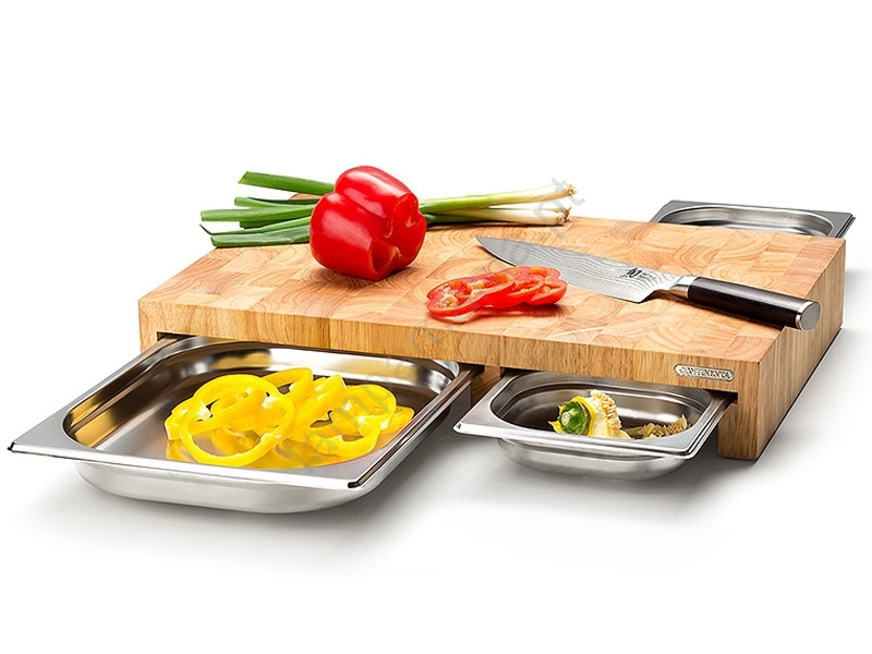 Continenta C4028 - CONJUNTO 1x tábua de cortar de cozinha 50x32,5 cm + 3x tigela de borracha de figueira