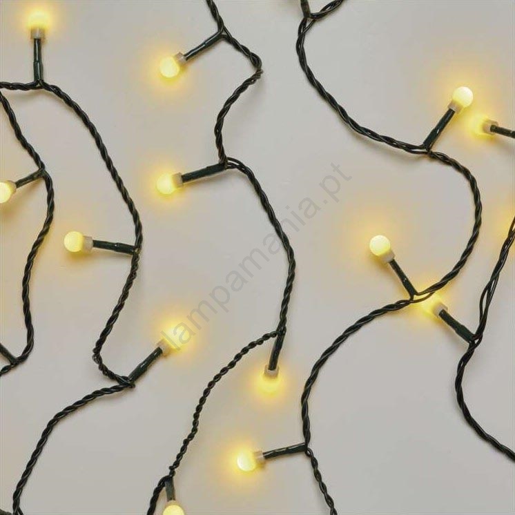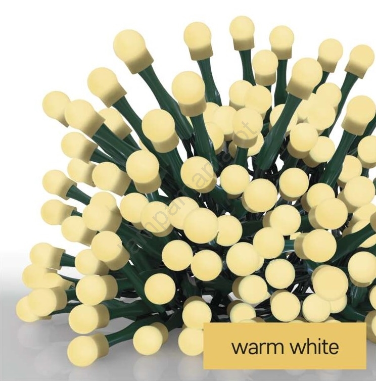 • Cordão de luzes de Natal LED, 80 LEDs, 230 V, 8 funções, 13 m, IP44, branco quente