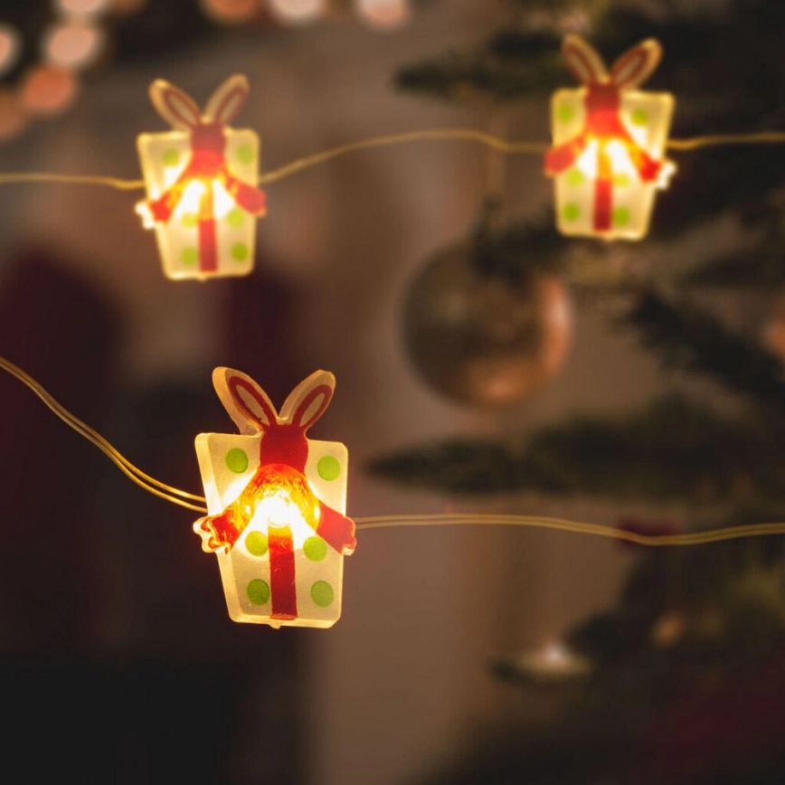 • Fita LED decorativa com pontos de luz em forma de presentes de Natal.