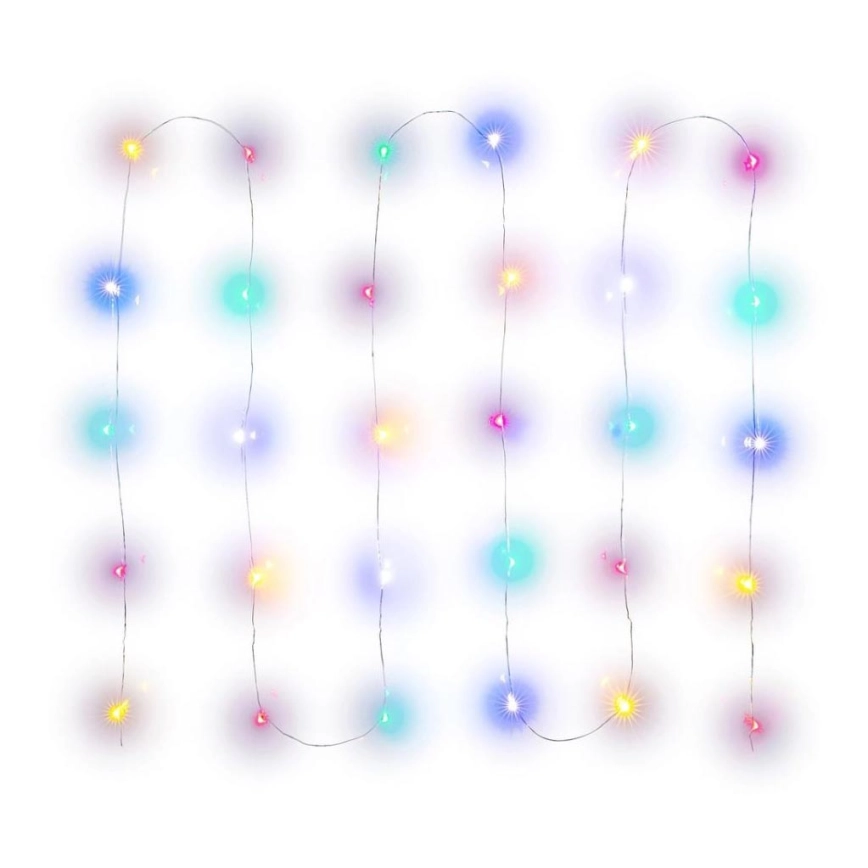 Cordão de luzes LED, 30 LEDs, alimentado por 2x AA, 3,3 m, multicolorido