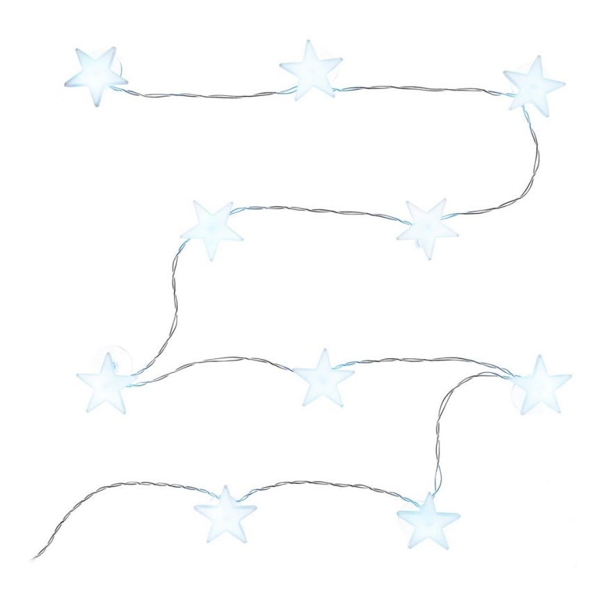 Cordão luminoso decorativo com ventosas, 10 LEDs, alimentado por 2 pilhas AA, 1,8 m, branco frio