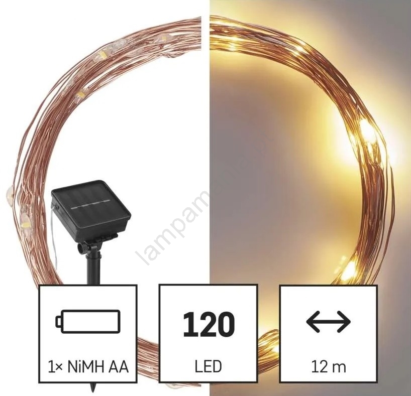 Cadeia de Luzes LED Solar LED/2,4W/1,2V 1xAA 15 m IP44 3000K 600 mAh